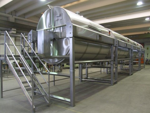 Vasca Polivalente Mod. FEINOX M.P.C.C., a culla per formaggi molli, chiusa ermetica, di tipo orizzontale a parete semplice o a tripla parete. Riscaldabili a vapore o ad acqua calda e con coibentazione in fibra minerale ad alta densità.